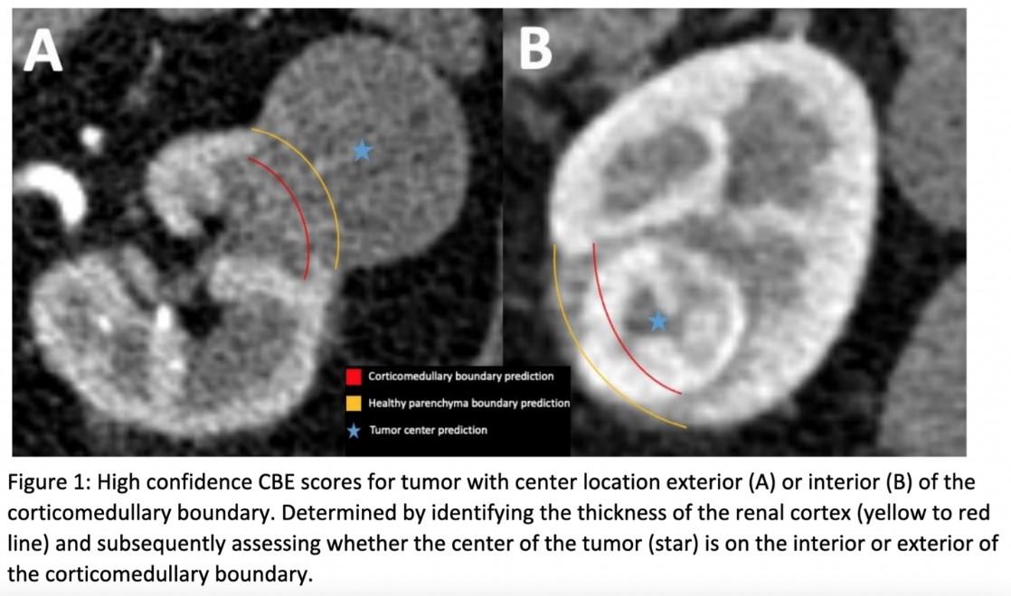 BACKGROUND: Since its introduction, the RENAL nephrometry score has proven to be an effective tool in medical decision making and surgical planning for renal tumors, shown to be predictive of several oncologic and operative outcomes. However, studies have shown high interobserver variability within RENAL’s endophycity (“E”) portion. Here, we propose the use of center-based endophycity (CBE) in place of RENAL “E” to improve interobserver agreement while maintaining utility.