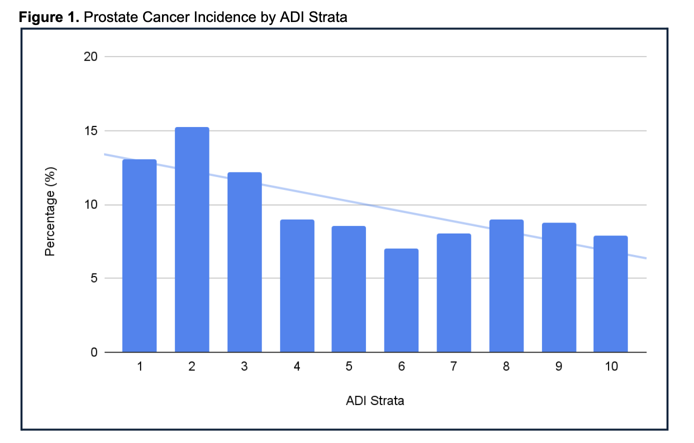 CONCLUSIONS: While PCa was more common in affluent neighborhoods, disadvantaged areas had higher-risk cancers. Treatment consistency across ADI levels highlights the benefit of systematic care. Further study is needed to address disparities in detection and severity.